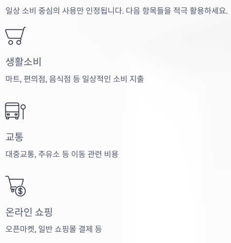 | 생활소비 | 마트, 편의점, 음식점 등 |