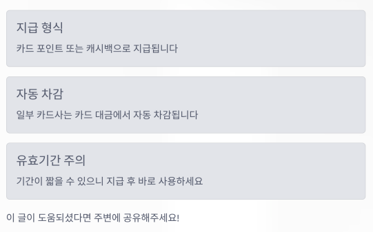 SMS 알림이 가지 않거나 금액이 예상보다 적다면 마이페이지를 통해 직접 내역을 확인해 보는 것이 가장 정확합니다.