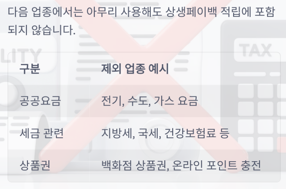 이러한 업종에서 아무리 사용해도 상생페이백 적립에는 포함되지 않습니다.
