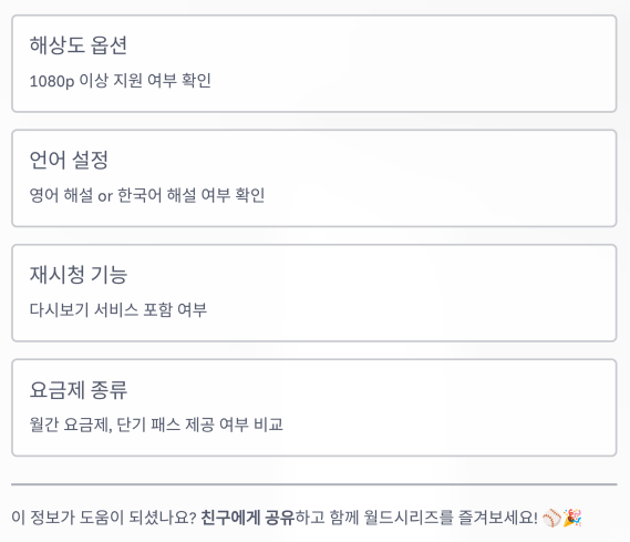 | 재시청 기능 | 다시보기 서비스 포함 여부 |