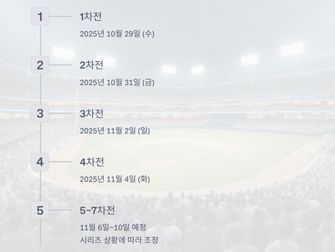 | 5차전~7차전 | 11월 6일~10일 예정, 시리즈 상황에 따라 조정 |