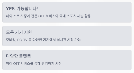 특히 해외 스포츠 중계 전문 OTT 서비스와 국내 스포츠 채널을 활용하면