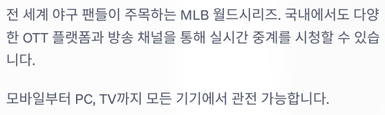 이번 글에서는 MLB 월드시리즈를 실시간 시청할 수 있는