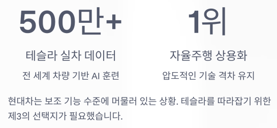 이 상황에서 현대차가 테슬라를 따라잡기 위해 내린 결단은 ‘직접 개발’도, ‘테슬라 기술 구매’도 아닌, 제3의 선택지였습니다.