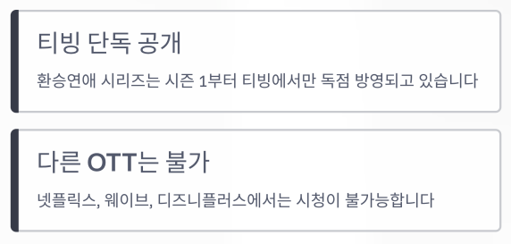 넷플릭스나 웨이브, 디즈니플러스에서는 시청이 불가능하니 꼭 티빙 앱 또는 웹사이트에서 시청하셔야 해요.