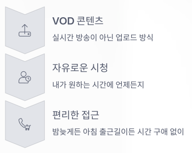 즉, 업로드된 후 내가 원하는 시간에 자유롭게 볼 수 있는 구조입니다.