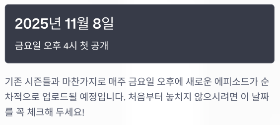 | 공개일 | 2025년 11월 8일 금요일 |