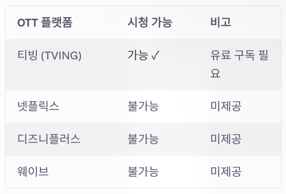 OTT 플랫폼 시청 가능 여부 비고
