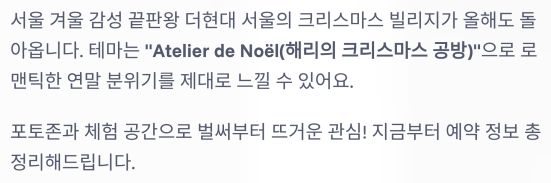 로맨틱한 연말 분위기를 제대로 느낄 수 있는 포토존과 체험 공간으로 벌써부터 많은 관심을 모으고 있어요.