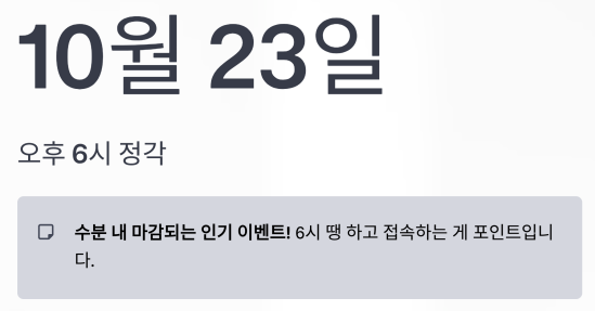 오픈 당일 수분 내 마감되는 인기 이벤트이기 때문에 시간 맞춰 대기하고 있어야 해요.