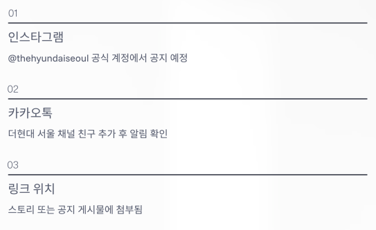 | 인스타그램 | @thehyundaiseoul 공식 계정에서 공지 예정 |