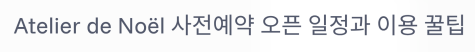 "Atelier de Noël" 사전예약 오픈 일정과 이용 꿀팁 알려드려요