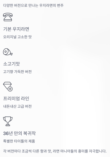 기본 우지라면 외에도 소고기맛, 프리미엄 내돈내산 버전,