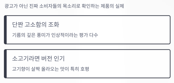 | 라면 마니아 | 기존 라면과는 다른 풍미 |