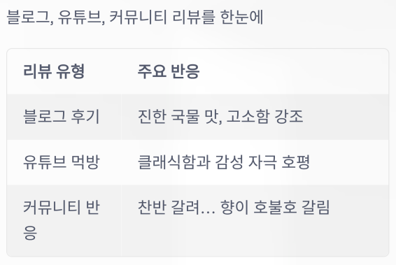 | 블로그 후기 | 진한 국물 맛, 고소함 강조 |