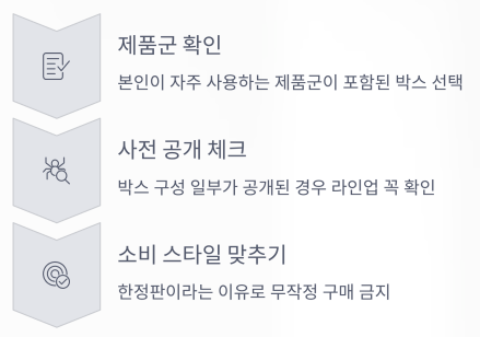 본인이 자주 사용하는 제품군이 포함된 박스를 선택하는 것!