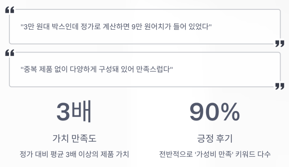 "3만 원대 박스인데 정가로 계산하면 9만 원어치가 들어 있었다"