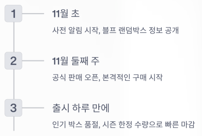 빠르게 품절되는 인기 박스는 출시 하루 만에 마감되기도 했죠.
