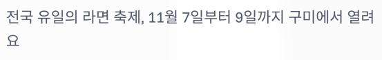 전국 유일의 라면 축제, 구미에서 11월 7일부터 9일까지 열려요