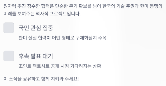 핵심 내용 요약: 한국 건조, 미국 연료 공급 분담
