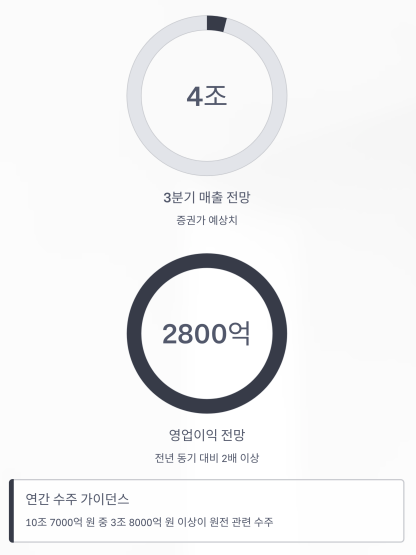 증권가는 두산에너빌리티의 3분기 매출을 약 4조 원, 영업이익을 2800억 원 수준으로 전망하고 있습니다.