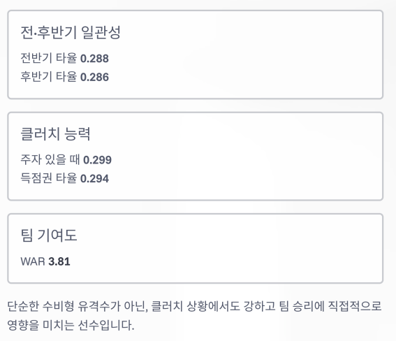 수치만 보면 박찬호는 단순한 수비형 유격수가 아닙니다.