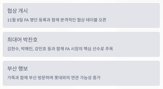 11월 9일, FA 명단 등록과 함께 본격적인 협상 테이블이 열렸습니다.