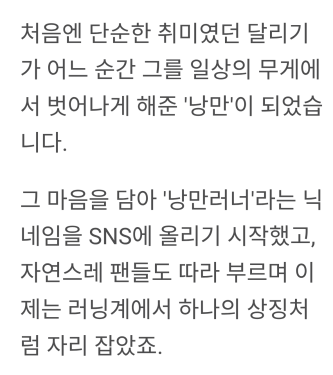 그 마음을 담아 ‘낭만러너’라는 닉네임을 SNS에 올리기 시작했습니다.