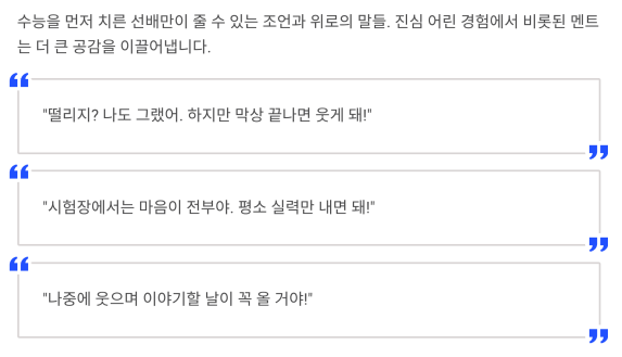 수능을 먼저 치른 선배만이 줄 수 있는 조언과 위로의 말들.