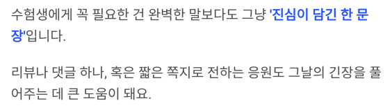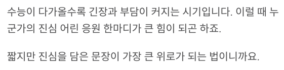 “수능은 네 인생의 전부가 아니야. 하지만 너는 이미 충분히 멋져.”