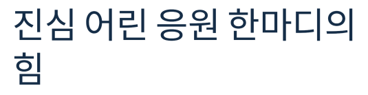 이럴 때 누군가의 진심 어린 응원 한마디가 큰 힘이 되곤 하죠.