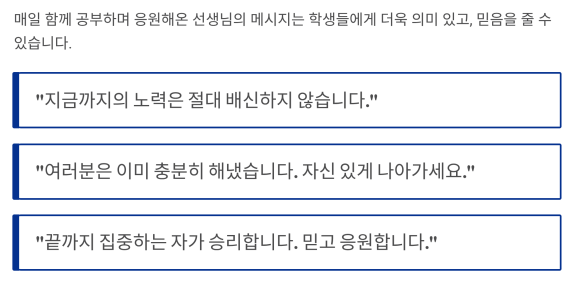 매일 함께 공부하며 응원해 온 선생님의 메시지는