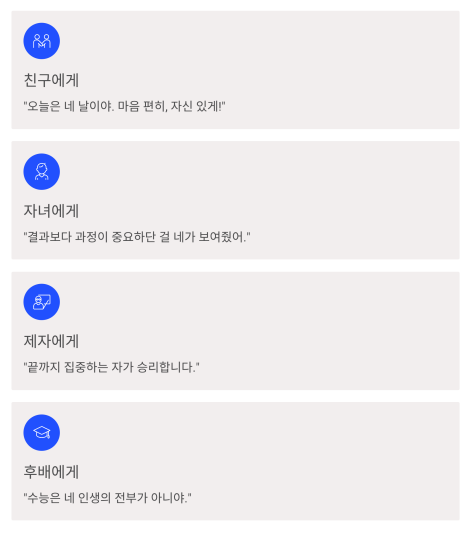 | 친구에게 | “오늘은 네 날이야. 마음 편히, 자신 있게!” |