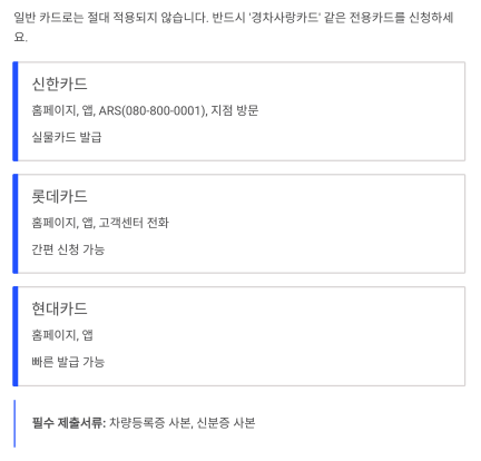 반드시 아래 카드사에서 ‘경차사랑카드’ 같은 전용카드를 신청해야 합니다.