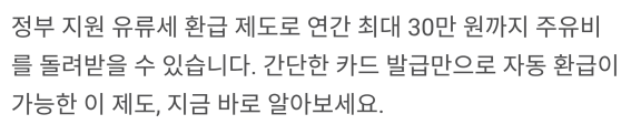 바로, 정부가 지원하는 유류세 환급 제도입니다.