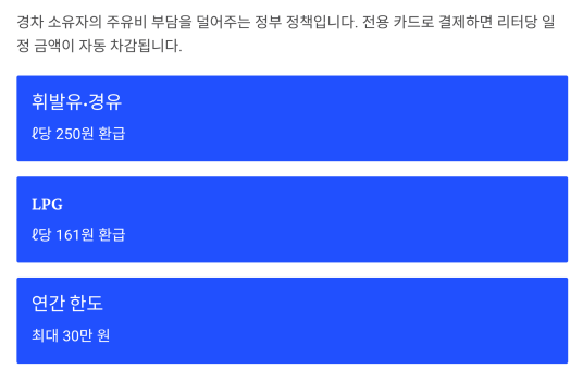 정부가 경차 소유자의 주유비 부담을 덜어주기 위해 마련한 정책입니다.
