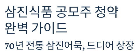 2025년 12월 공모 상장 예정 ‘삼진식품’, 청약 전에 꼭 확인해야 할 투자 포인트는?70년 전통의 어묵 브랜드 '삼진어묵'으로 잘 알려진삼진식품이 드디어 IPO(기업공개)에 나섭니다.특히 이번 공모는 일반 청약자들의 참여 열기가 뜨거운 가운데,수요예측 결과와 최종 공모가 확정 등 주요 일정들이속속 마무리되며 본격적인 청약이 코앞으로 다가왔는데요.이 글에서는 삼진식품 공모주의 전반적인청약 일정, 수요예측 결과, 공모가, 투자 포인트까지 정리해 드립니다.삼진식품, 어떤 회사인가?삼진식품은 ‘삼진어묵’ 브랜드로 유명한 국내 대표 수산가공식품 전문 기업입니다.1953년 설립되어 70년 넘는 전통을 가진 기업으로,최근에는 프리미엄 어묵 브랜드로 자리매김하며온라인 매출 확대, 전국 백화점 입점,글로벌 수출까지..