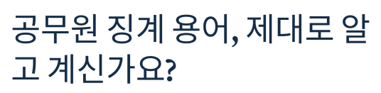 공무원 징계 용어들, 어떻게 다를까요?공무원이나 직장인의 징계 관련 기사나 뉴스를 보다 보면‘파면’, ‘해임’, ‘정직’, ‘감봉’ 등의 단어들이 자주 등장합니다.얼핏 보면 비슷해 보이지만,각각의 징계는 적용 기준과 결과가 모두 다릅니다.이번 글에서는 파면부터 감봉까지의의미와 차이를 쉽게 풀어 설명드릴게요.헷갈렸던 분들에게 딱 정리되는 글이 될 거예요!파면: 공무원 생애에 가장 큰 징계파면은 공무원 징계 중 가장 무거운 처분으로, 직위를 박탈당할 뿐 아니라일정 기간 동안 공무원으로 재직할 수도 없습니다. 주요 특징은 아래와 같습니다.직권 박탈퇴직금 전액 또는 일부 제한 가능5년간 공무원 재임용 제한즉, 공무원에게는 치명적인 징계죠.형사범죄나 비위 행위와 같은 중대한 사유가 있어야 합니다.해임: 직위는 잃..