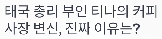 태국 총리 부인 티나의 커피 사장 변신, 진짜 이유는?