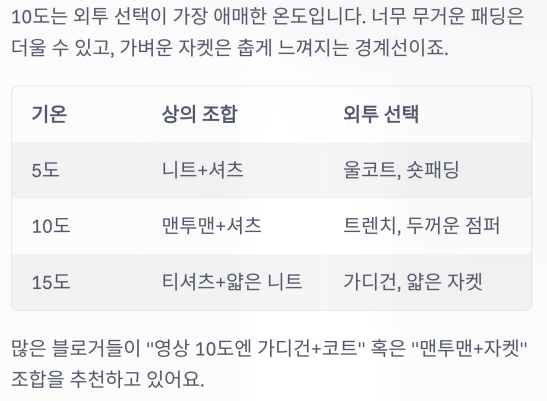 많은 블로거들이 “영상 10도엔 카디건+코트”