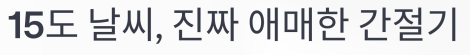 15도 날씨, 진짜 애매한 간절기