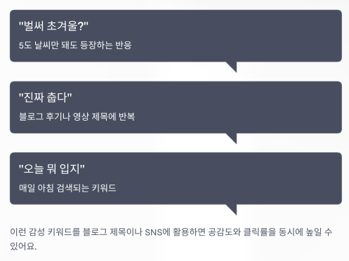 이런 감성 키워드를 블로그 제목이나 SNS에 활용하면