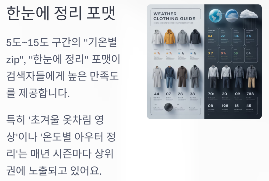 “기온별 zip”, “한눈에 정리” 포맷의 콘텐츠가