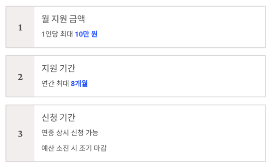 | 월 지원 금액 | 1인당 최대 10만 원 |