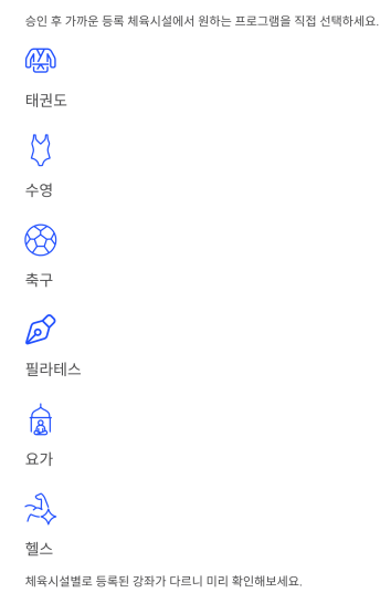 승인을 받은 뒤에는 가까운 등록 체육시설에서 원하는 프로그램을 직접 선택할 수 있어요.