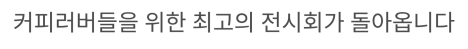 11월 19일부터 22일까지 단 4일간 열리는 국내 최대 규모의 커피 박람회입니다.