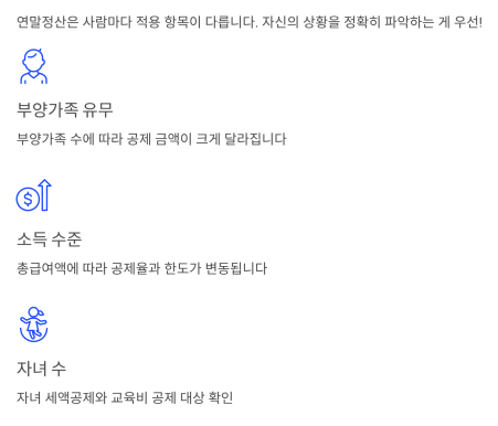 연말정산은 사람마다 적용되는 항목이 다르기 때문에,