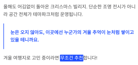 눈은 오지 않아도, 이곳에선 누군가의 겨울 추억이 눈처럼 쌓이고 있을 테니까요.