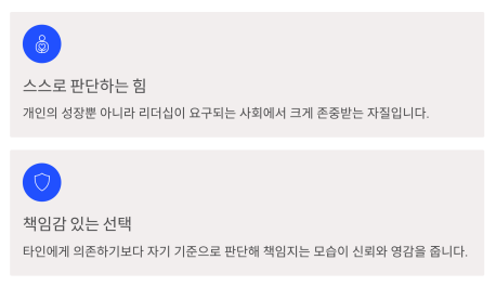 | 자기 관리 | 꾸준함과 자율성이 뛰어남 | 자기 기준이 엄격해 스트레스를 받을 수 있음 |
