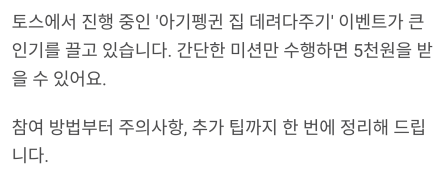 토스 아기펭귄 집 데려다주기 이벤트, 5천원 받는 꿀팁 총정리